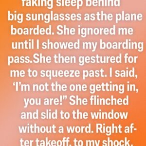 A woman was in my seat, faking sleep behind big sunglasses as the plane boarded. She ignored me until I showed my boarding pass. She then gestured…